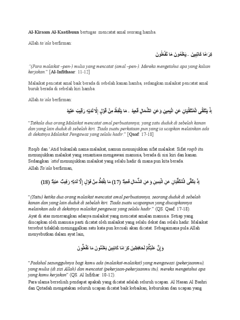 Sebab malaikan Raqib akan setia berada di sisi manusia sambil menunggu untuk mencatat amal baik yang dilakukan. Catatan amal buruk ditulis oleh. حم ḥā mīm Ha Mim.