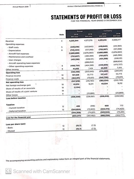 Solved Annual Report 2019 Airasia Berhad 2006014109 734161 Chegg Com
